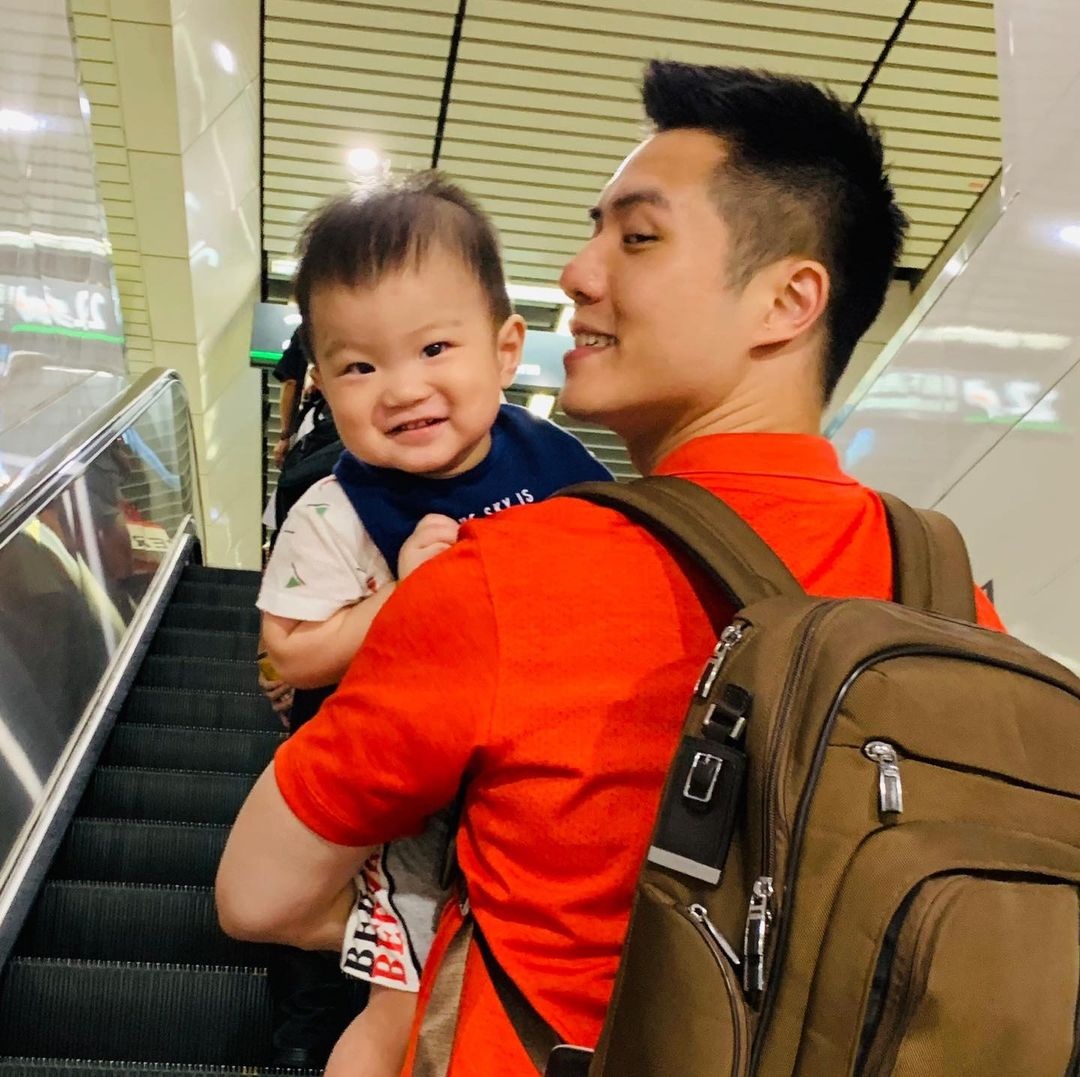 (為了這空背包理論,找了一張後面揹背包,前面抱寶寶的照片,哈)