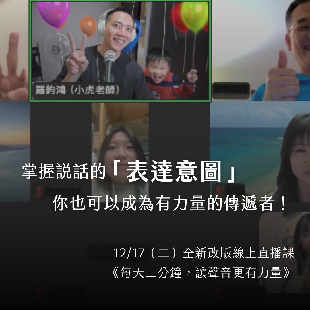 而除了自己的聲音,視覺的輔助和手勢的運用,也都能增加與聽眾的連結喔!想知道更多細節,那就一起來【每天三分鐘,讓聲音更有力量!】學習吧!